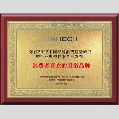 獎 項:2022中國家居消費趨勢研究-衛浴行業典型樣本企業