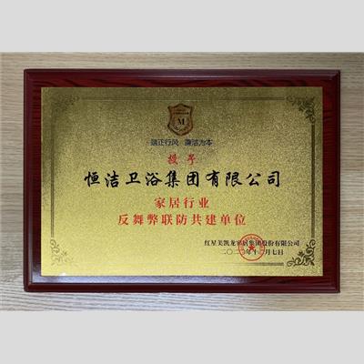 獎(jiǎng) 項(xiàng):家居行業(yè)反舞弊聯(lián)防共建單位-恒潔
