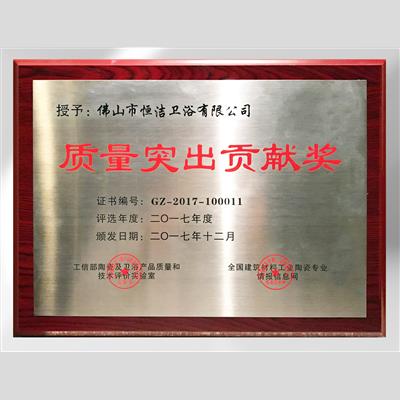 獎 項:2017年度市政府貢獻獎(廣東恒潔衛浴有限公司)