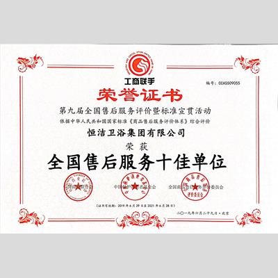 獎 項:全國售后服務(wù)十佳單位
