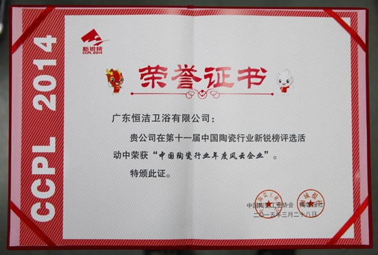 3月28日,第十一屆“新銳榜”在佛山新媒體園隆重揭曉。恒潔衛浴以絕對實力優勢的姿態問鼎業內,再度蟬聯“年度風云企業”大獎。