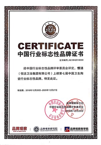 12月28日,由中國商業(yè)經(jīng)濟(jì)學(xué)會、全國品牌社團(tuán)聯(lián)席會、品牌觀察雜志社、品牌觀察研究院、品牌觀察商學(xué)院、北京國信品牌評價科學(xué)研究院聯(lián)合舉辦的第7屆中國行業(yè)標(biāo)志性品牌頒獎儀式在福州舉行,恒潔榮膺行業(yè)唯一的「2018中國衛(wèi)生陶瓷行業(yè)標(biāo)志性品牌」,與同時上榜的華為、格力、方太等各自行業(yè)的標(biāo)志性品牌一道,共顯中國品牌風(fēng)采。