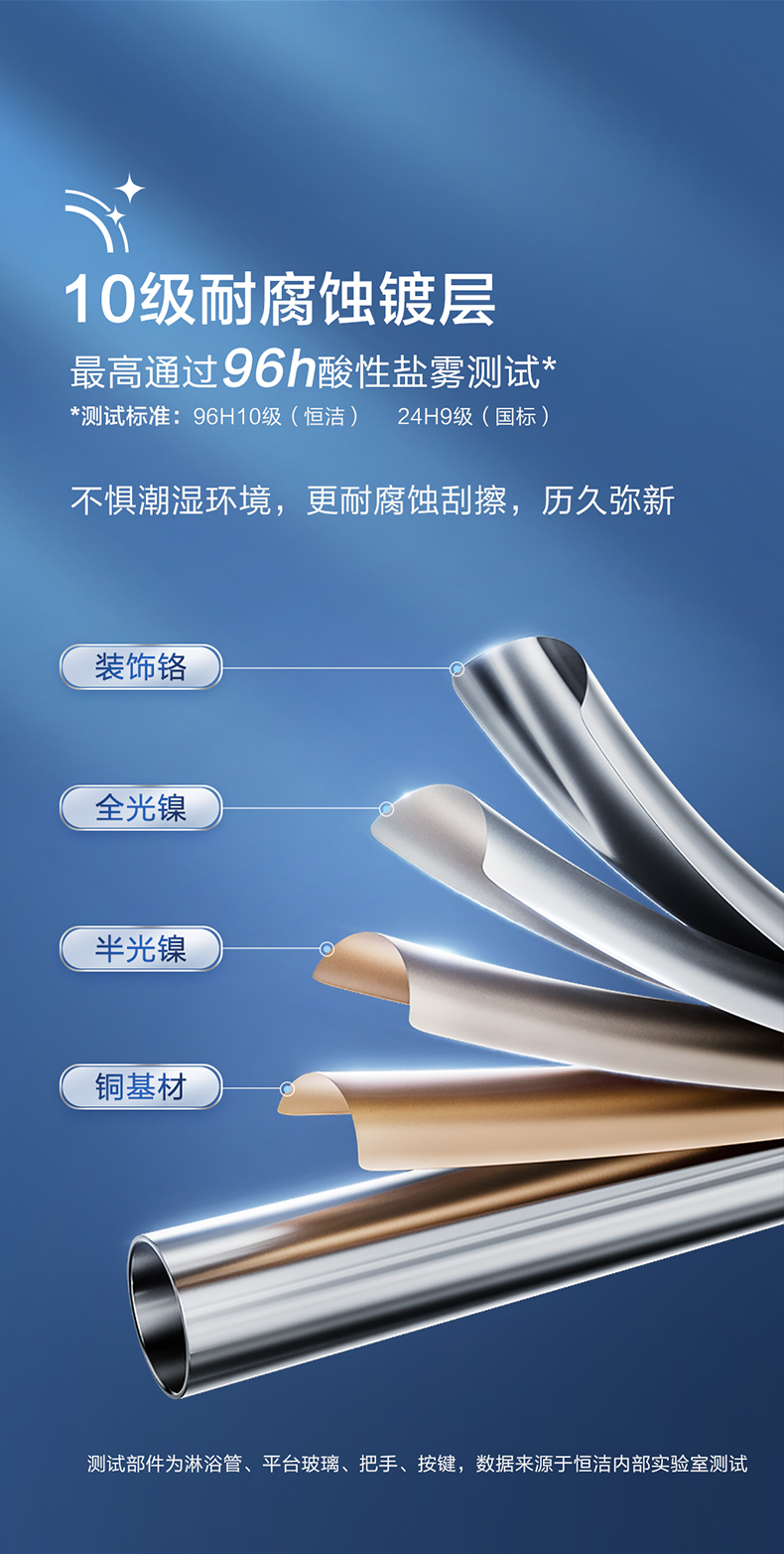 - 10級鍍層技術(shù),最高通過96h酸性鹽霧測試,持續(xù)光亮,經(jīng)久耐用