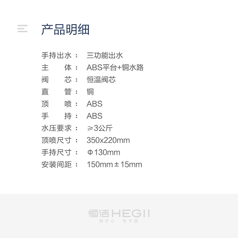 - Φ130mm大面板手持,三種淋浴體驗(yàn),多重享受