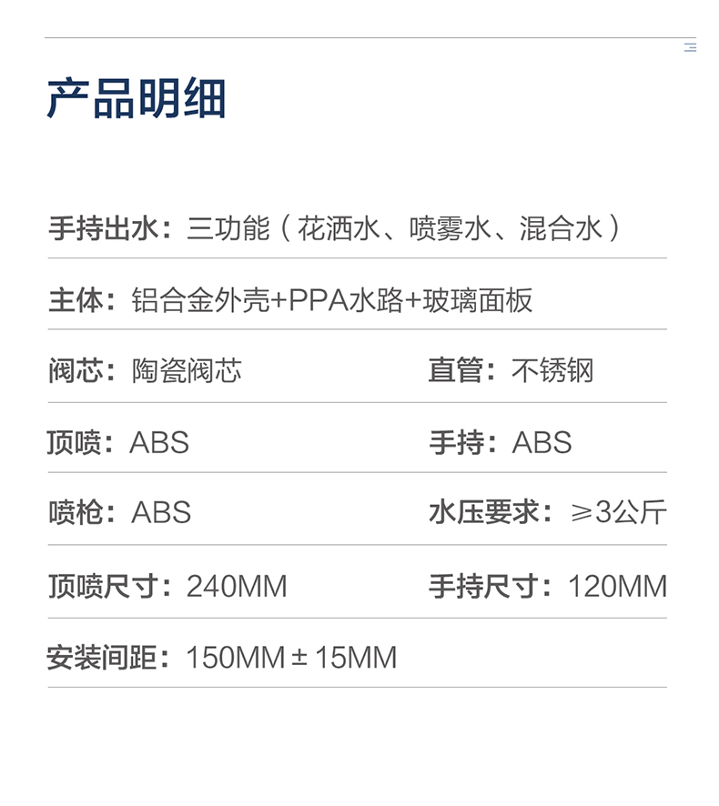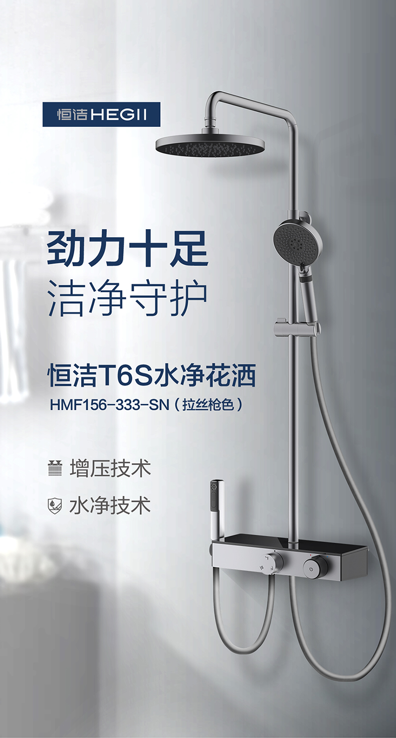 - 恒潔增壓技術,0.45mm極致細孔設計,出水密集柔和