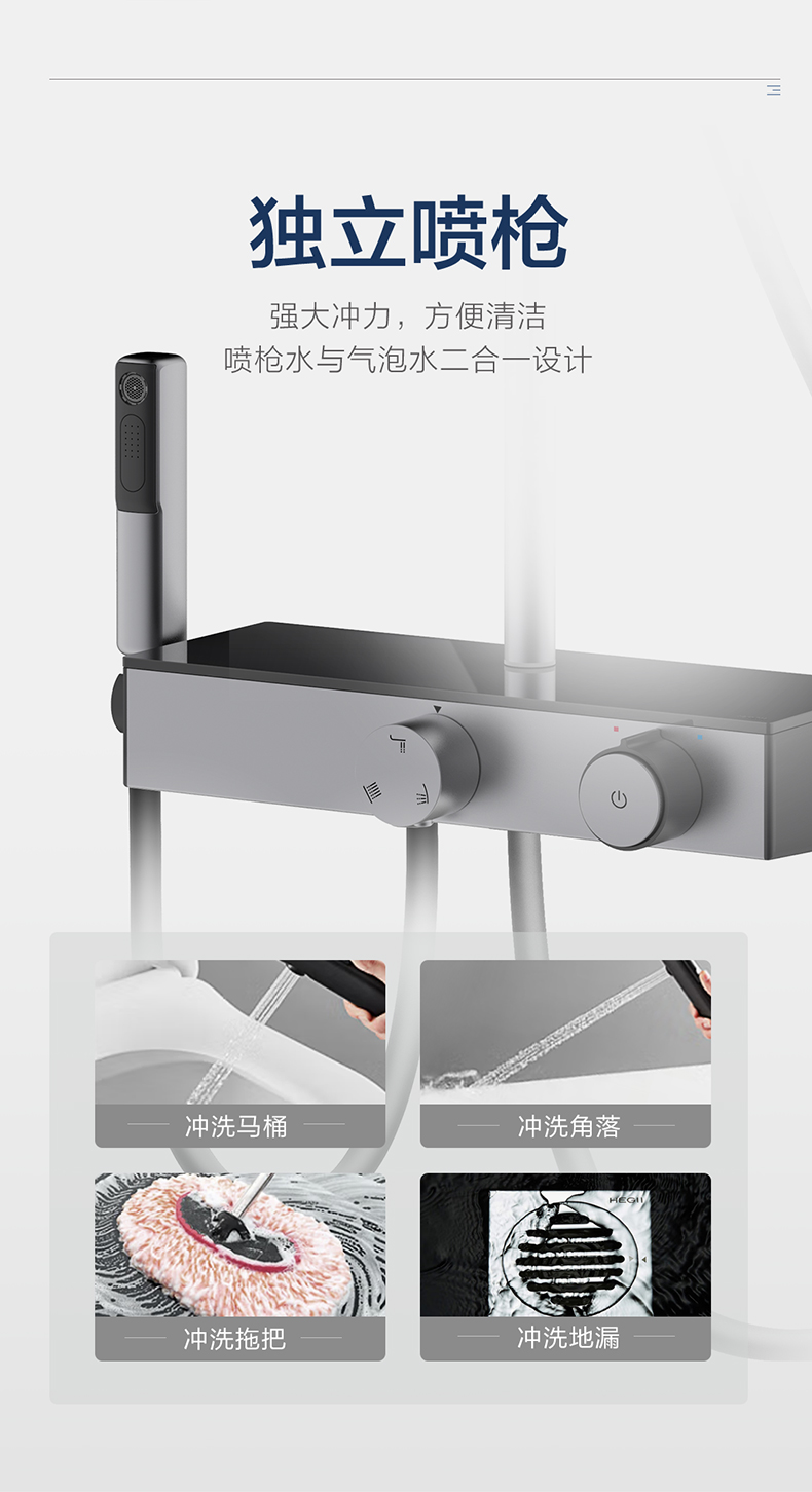 - 獨立噴槍,澎湃水力,輕松清潔