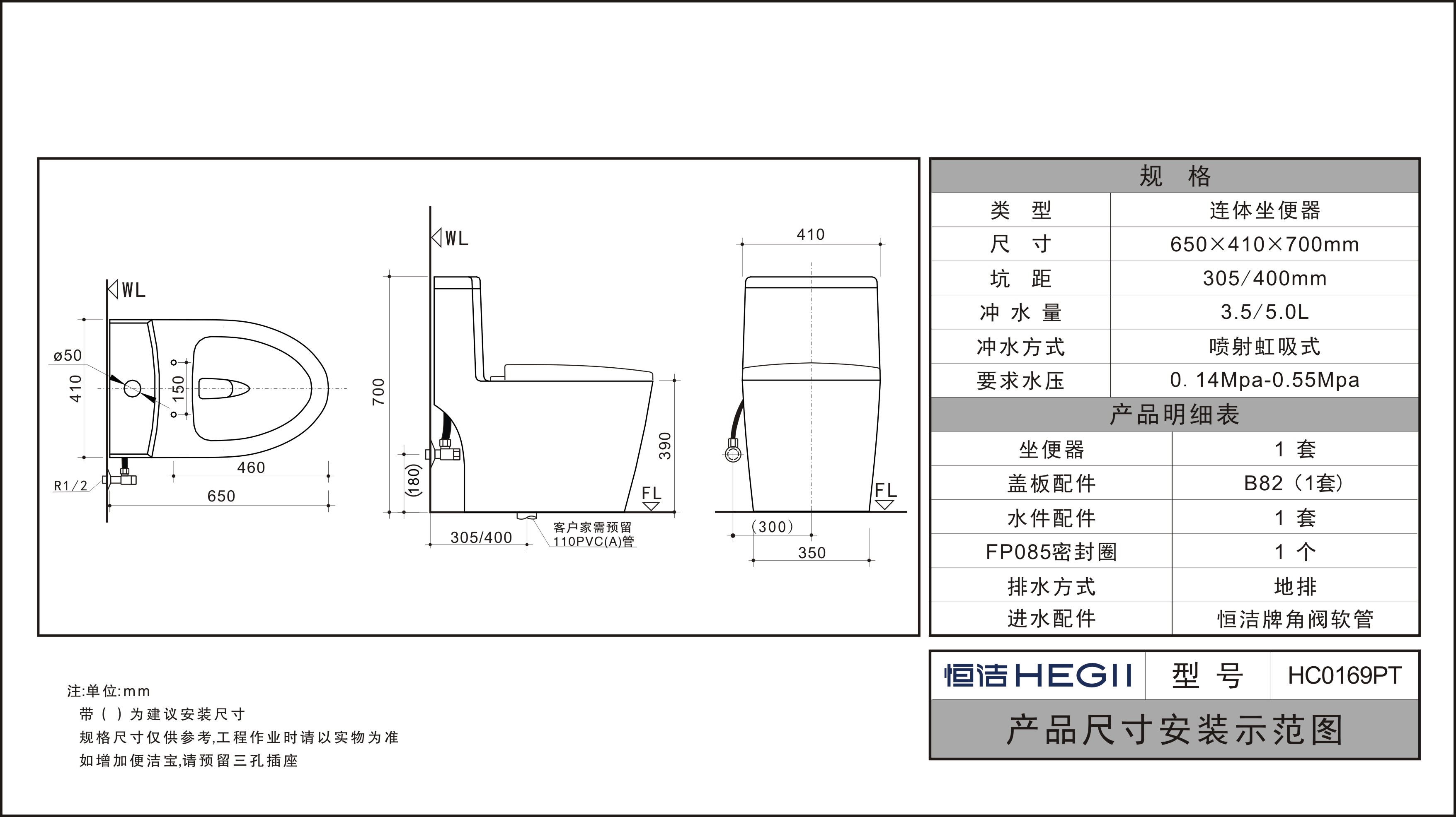 - 要求水壓:0.14Mpa-0.55Mpa