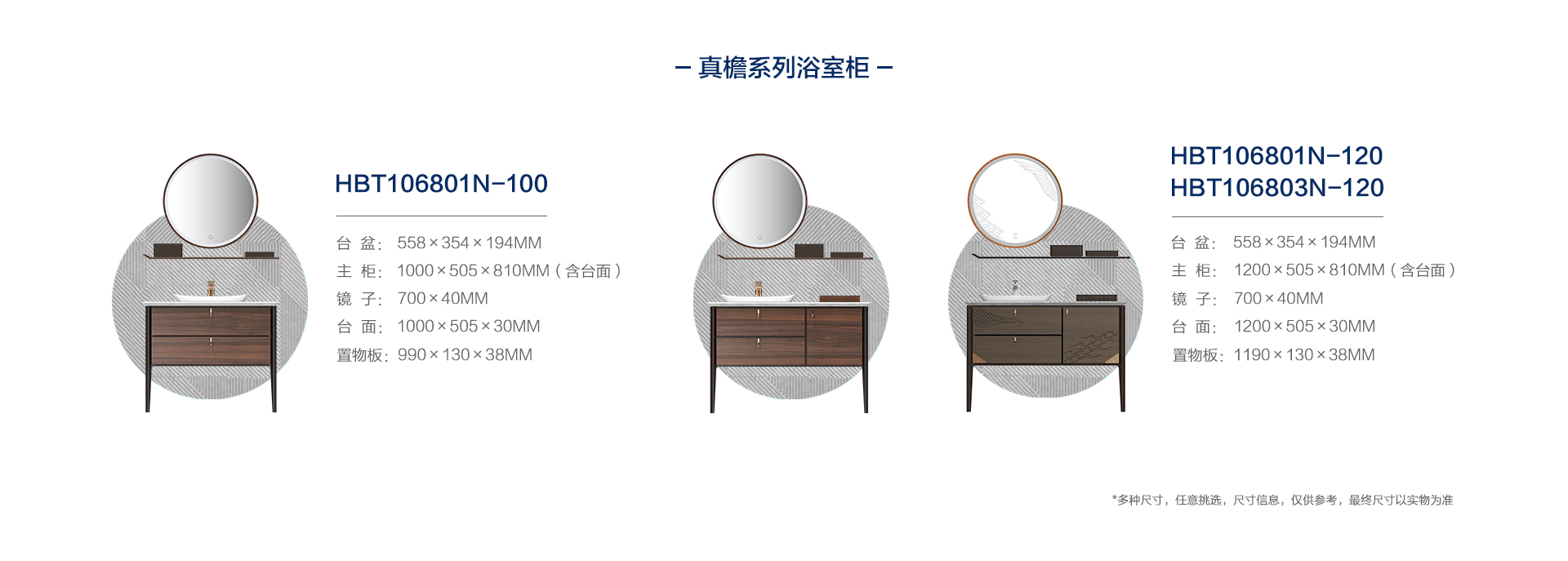 HBT106803N-120 (經典胡桃木色)實木浴室柜