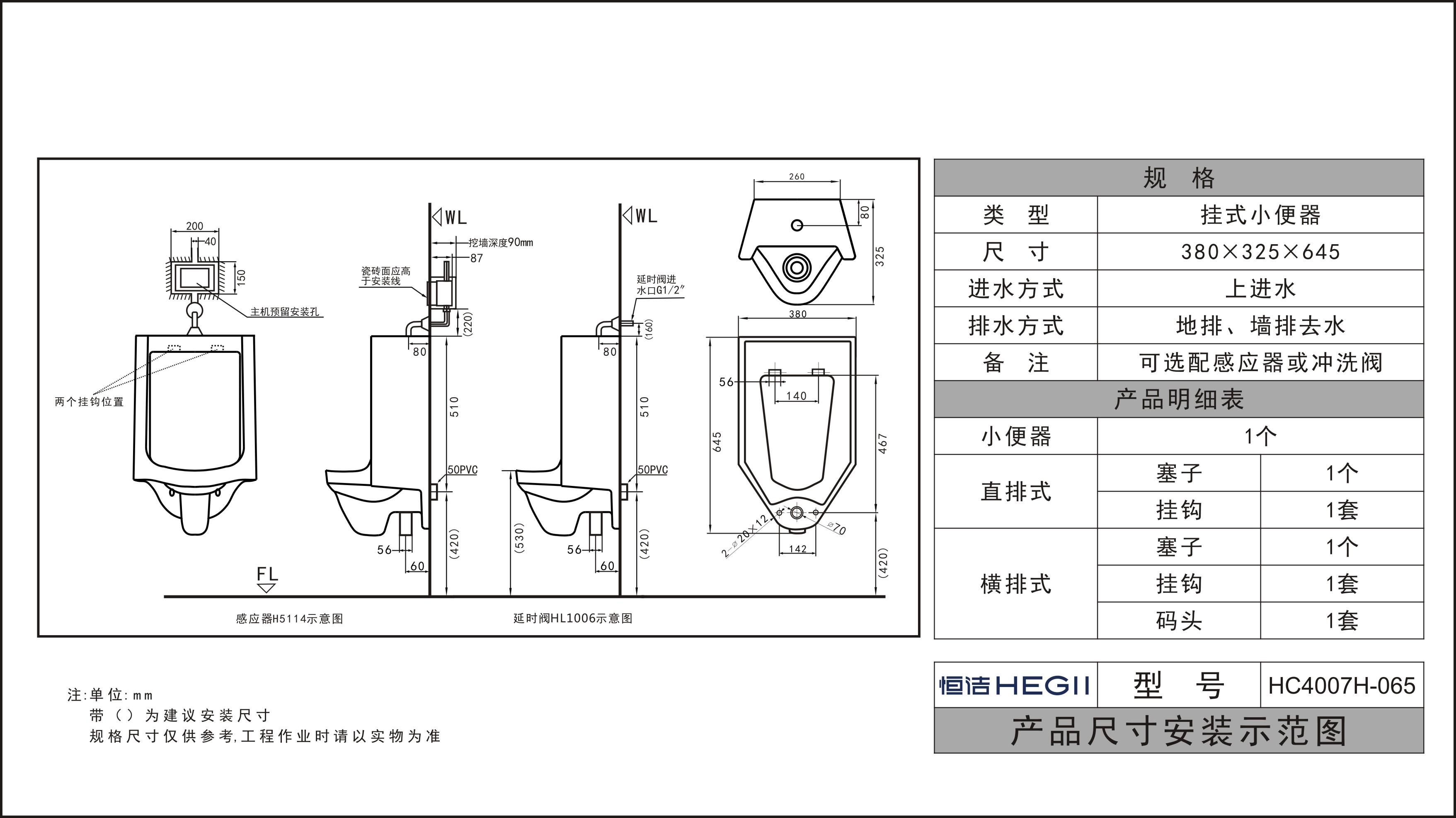 備注:可選配沖洗閥HMV21006\21002;感應(yīng)器HMV11050AC/DC(需搭配上進水配件)